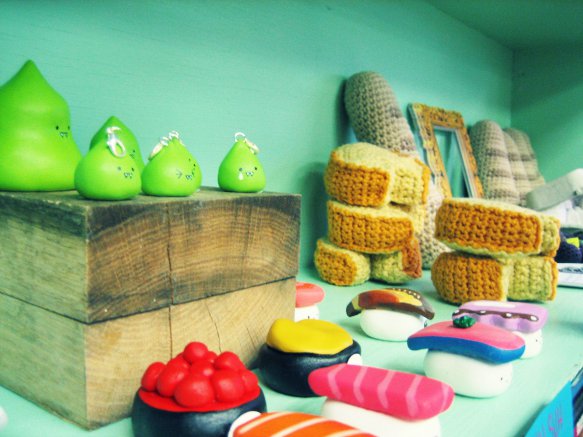 (This is a snapshot of my goods on the shelf at the opening reception. And hey look! An article about what when down right here.)