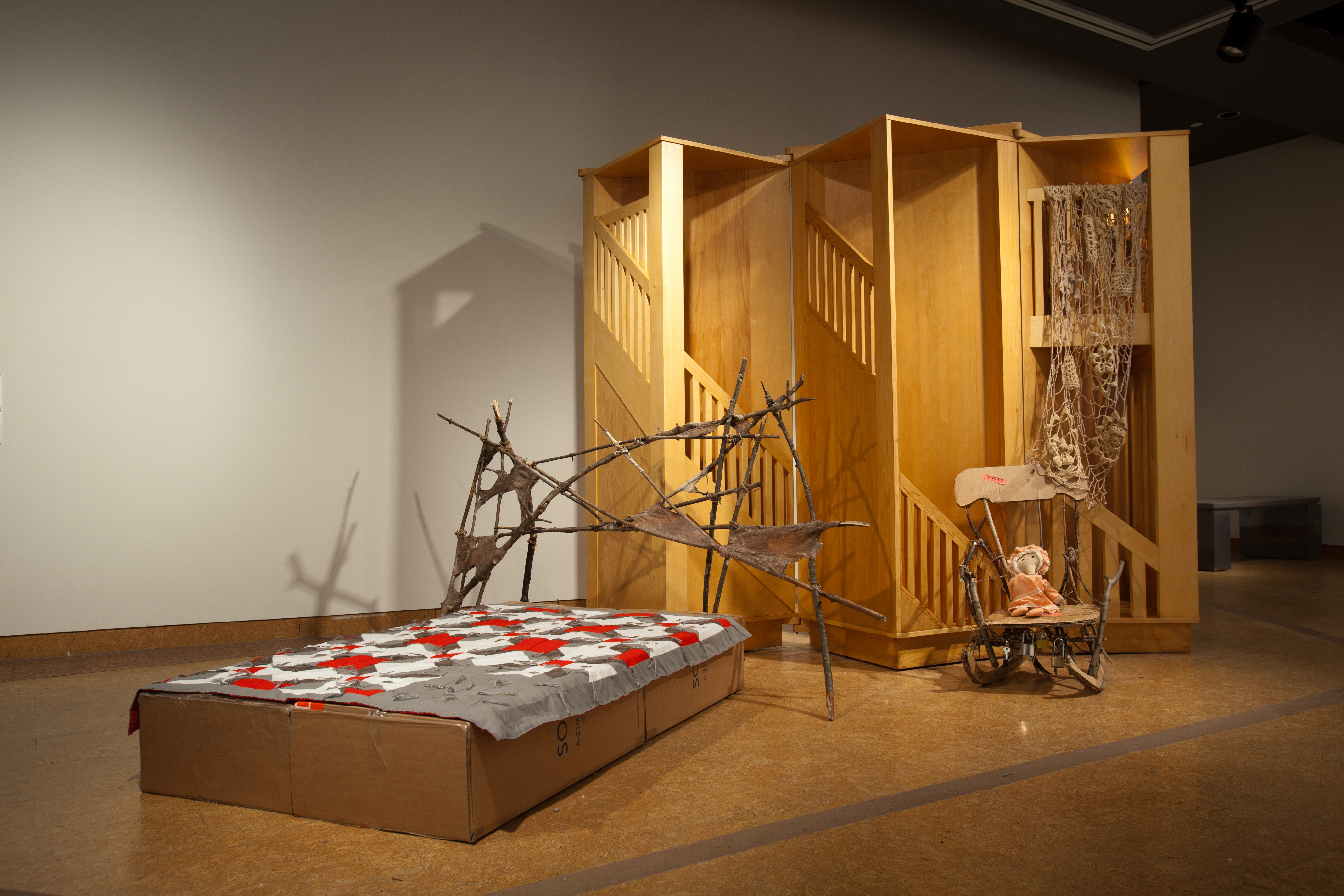 Installation with Maggie Wesley’s sculpture Rhythm of Steps. Presented at Ottawa City Hall Art Gallery December – January 2011.